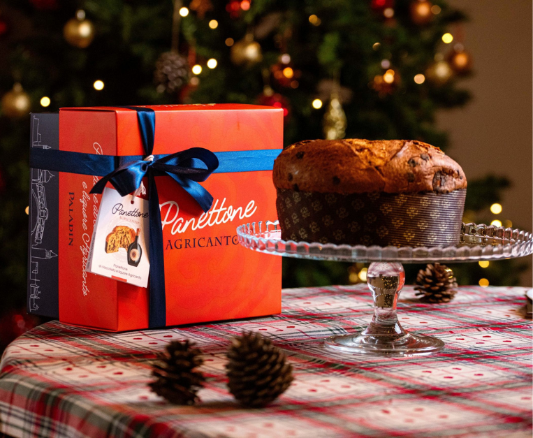 L’iconico liquore veneto Agricanto diventa protagonista di un panettone ricco, profumato e immediatamente riconoscibile. Dopo 48 ore di lievitazione naturale e il classico raffreddamento a testa in giù, il dolce viene irrorato con Agricanto puro – vino Raboso, con succo di ciliegie, mandorle, finissima grappa, piante officinali e spezie –, regalando una fragranza intensa, tra ciliegia, spezie e tradizione veneziana.