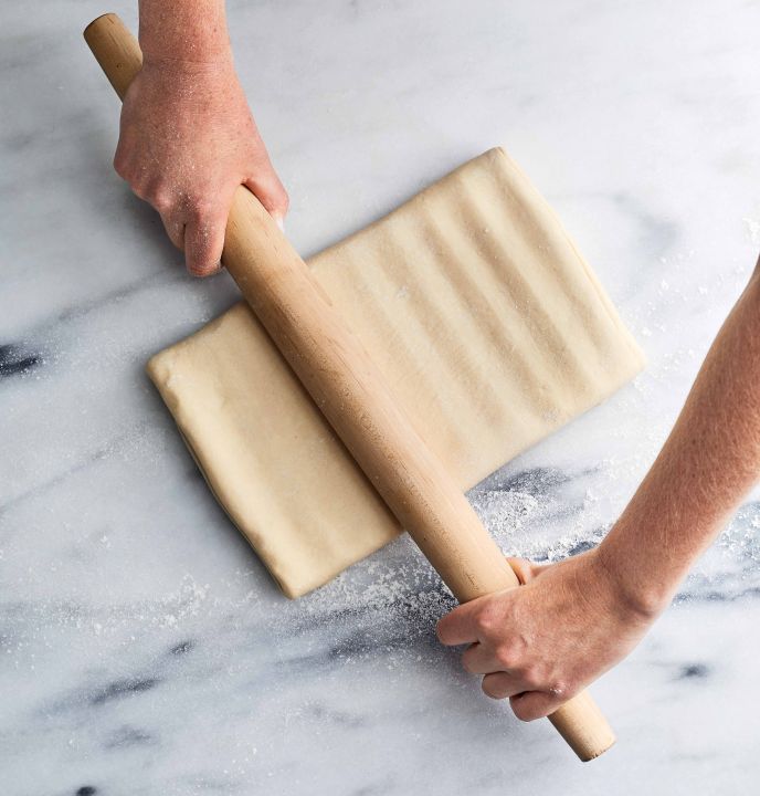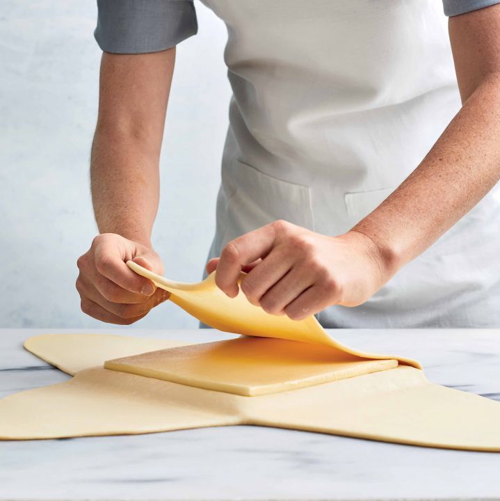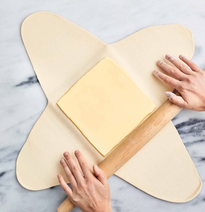 Da fare in anticipo: il panetto di burro (passaggio 2) può essere preparato in anticipo, avvolto in pellicola alimentare e conservato nel frigorifero fino a 2 settimane. Lasciatelo riposare a temperatura ambiente finché non ammorbidisca leggermente, per circa 10 minuti, prima di iniziare con la sfogliatura.