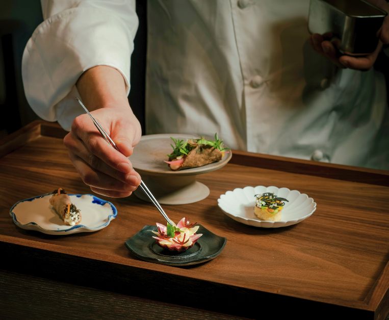 Questa collaborazione ha segnato un momento fondamentale nel percorso dello chef argentino in Italia, che proprio nella città del giglio ha tracciato le basi di una proposta gastronomica innovativa, raffinata e profondamente emozionale. Un’esperienza che ha aperto la strada al nuovo capitolo veneziano, proseguendo il dialogo tra tradizione e modernità che caratterizza la sua cucina. Ad accomunare i menu delle due città c’è la sua idea (ben riuscita) di proporre dolci-non-dolci: se a Firenze resta in carta il Flan di formaggio di capra, coulis di albicocca e vaniglia, e melissa in agrodolce tra i dessert, il percorso veneziano si conclude con una Panna Cotta, caramello di patata dolce, crumble e aceto balsamico di Modena Bonini Invecchiato 25 Anni.