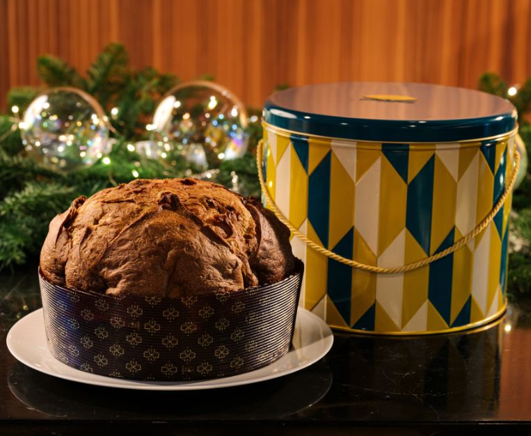 Il panettone del mitico albergo milanese, firmato da Gennaro Esposito e dal pastry chef Carmine Di Donna, è un esercizio magistrale di classicità. Arancia candita nostrana, uvetta selezionata e miele campano compongono un gusto profondo e luminoso, sigillato da una lievitazione impeccabile. Ogni passaggio è controllato come un rito. Il packaging, ispirato agli interni del Grand Hotel, aggiunge un tocco di nobiltà milanese.