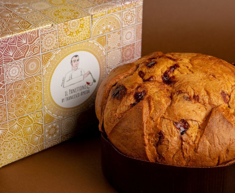 Il panettone ai Frutti di Bosco di Apreda fonde tradizione e spezie con un’eleganza tutta personale. Zafferano, semi di coriandolo, limoni di Sorrento e frutti rossi costruiscono un mosaico aromatico vivace, dinamico, sorprendente. Non stupisce che abbia conquistato il titolo di “Miglior panettone gourmet” a Panettone Maximo 2025: è un lievitato che racconta viaggi, intuizioni e una cucina profondamente identitaria.