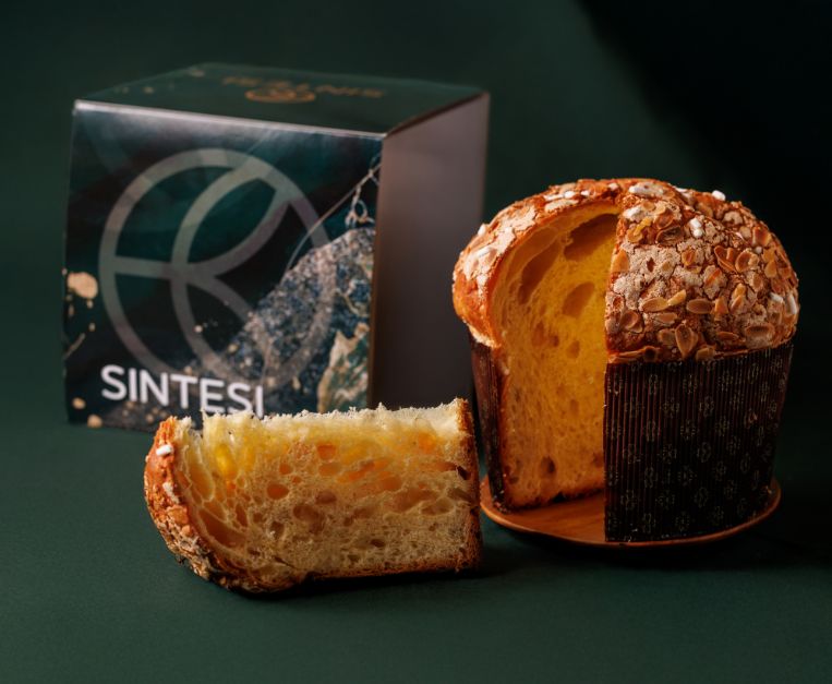 Il panettone di Sintesi, firmato da Matteo Compagnucci e Matteo Montagnani, incarna la filosofia minimale del ristorante: pochi elementi, scelti con cura e calibrati con precisione. Limone candito e fava tonka disegnano un profilo aromatico moderno e avvolgente. L’impasto, soffice e pulito, racconta una pasticceria essenziale ma ricca di personalità. Un dolce in edizione limitata che parla di ricerca e identità.