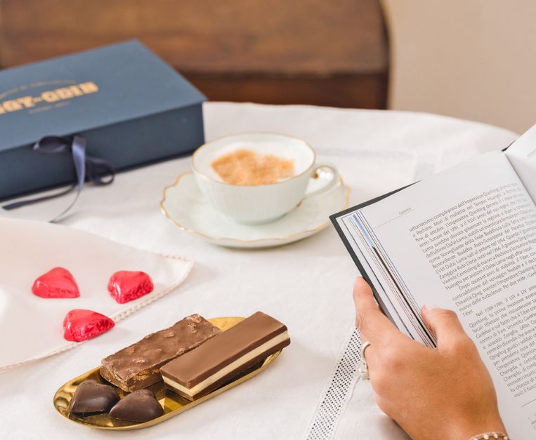 Febbraio, da Gay-Odin, è un doppio rito: Carnevale e San Valentino. Da una parte il sanguinaccio napoletano (crema fondente con cacao criollo, cannella e vaniglia), disponibile nei giorni che precedono il Martedì Grasso; dall’altra cuori e tavolette personalizzabili con dediche scritte a mano. Tra le novità 2026 anche la linea “Deliziosa Italia”, packaging che omaggia le città con illustrazione e fotografia. Tradizione che si muove, senza perdere identità.