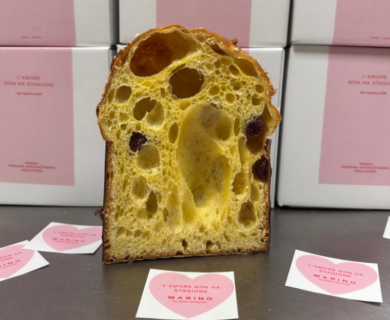 Dalla spiaggia di Cervia, l’ex bagnino cesenate firma un’idea contro-calendario: il panettone di San Valentino in edizione limitata (500 g), pensato come regalo da fine cena o da condividere durante la giornata. L’impasto incontra fragoline e cioccolato bianco aromatizzato ai petali di rosa rossa, con copertura di mandorle e zuccherini. Il claim è dichiarazione di poetica: L’amore non ha stagione, come il panettone, ormai.